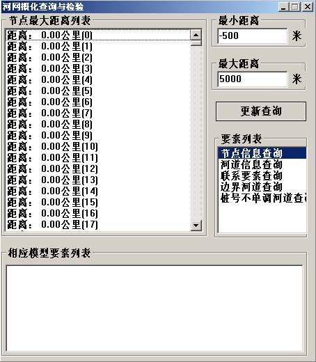 快速漫游到所需到达的河道、联系要素、边界节点等,并且在GIS图层上标注出来。双击节点最大距离列表的条目,可以动态定位到当前查询结果所指示的地理要素。