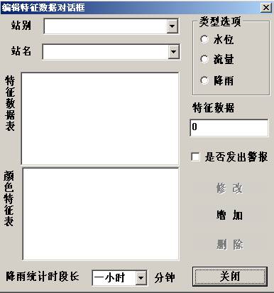 增加——将为选定站点某一水文数据项(水位、流量、降雨)所做的特征数据设置,做为新方案加入到特征数据设置列表里。