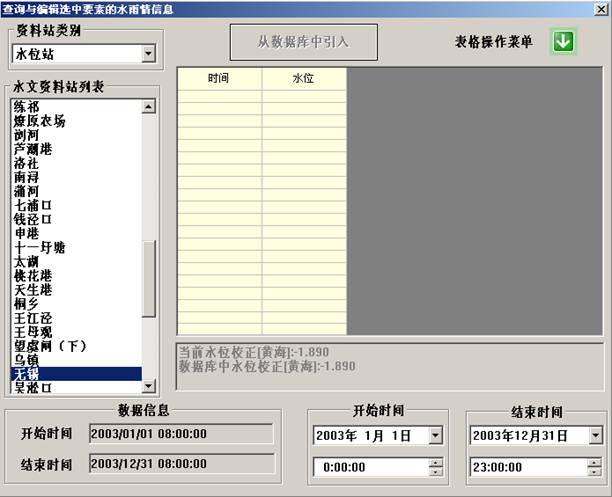 站码表查询——查询外部数据库中的站码表,以确定待匹配的水文资料站的站名与内部站码。