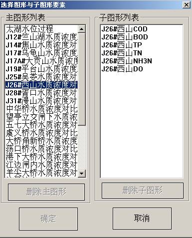 数据项列表——当前选择的子图形中包含的要素,即具体的水文图表。它可以是某一站点的水文过程,也可以是某条河段的水面线。