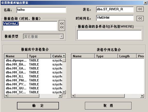——表名——从数据库表格集合中选择水文资料站表作为计算输出结果的匹配表。