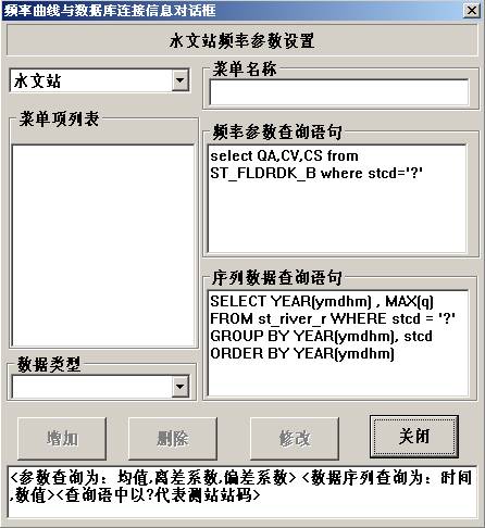 频率参数查询语句——根据选定的数据类型,用SQL语句查询某一站点资料序列的频率参数。