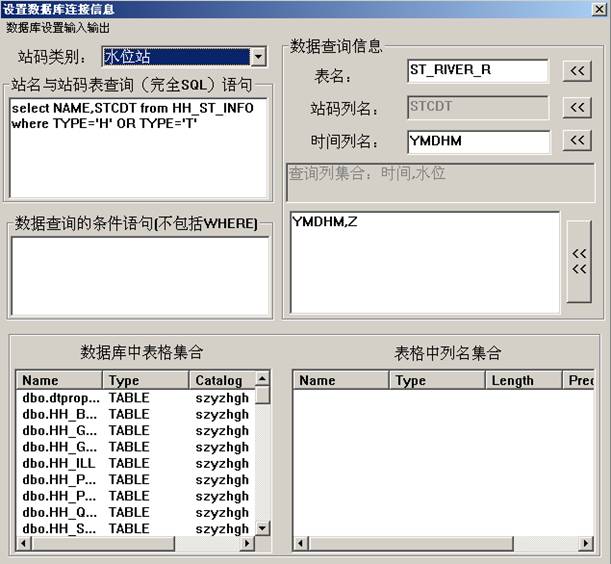 根据数据库中所存放的水文资料的库表结构,从中设置数据库的连接信息。