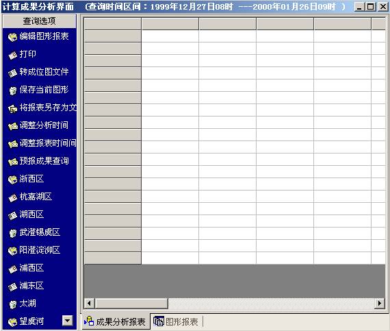 当成果分析报表中有数据时,可用此菜单项调出以下界面,其为一主图形,编辑好其所包含的子图形后,系统会将此图形报表保存在本文档的RPT文件夹中。