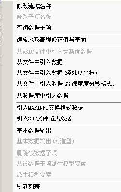 从ASIC文件中引入大断面数据——为河道型地形区域引入大断面资料,选中某一河道型地形区域对象,此项即可激活。