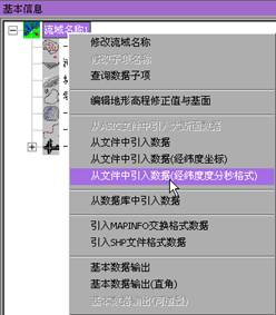 此时若需要细化某一分区,执行“操作选项”中的“研究区域选择与操作”,选中某一分区,执行右键菜单中的“设置局部河网水系”,可将此局部河网水系细化。