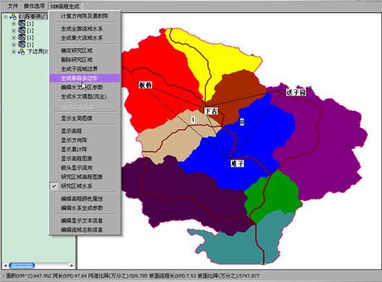 7)生成子流域边界:打开“DEM高程生成”菜单中的“生成子流域边界”。