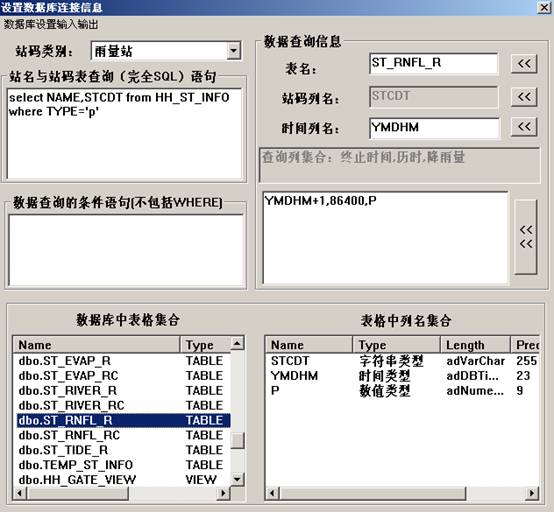 水文站网的数据库接口:采用ODBC标准接口与数据库相连接,可以连接任意网络数据库。下图中的例子是连接的ACCESS数据库。