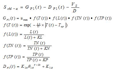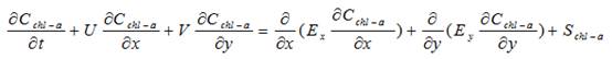式中:Cchl-a为叶绿素a的浓度;U、V,Ex,Ey的意义同上;Schl-a为叶绿素a的转化项。