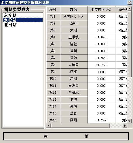 编辑当前水文序列中选定类型测站中某测站的数据库中水位高程校正值。