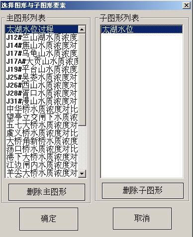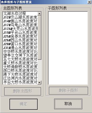 数据项列表——当前选择的子图形中包含的要素,即具体的水文图表。它可以是某一站点的水文过程,也可以是某条河段的水面线。