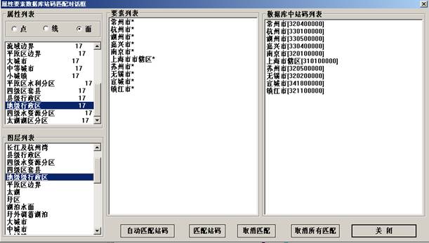 匹配站码——手动建立要素列表的各要素和数据库中的站码列表中要素的一一对应关系。