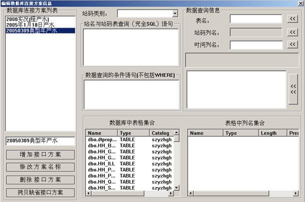 根据外部数据库站码,可以设置 多种水文数据连接方案,即连接信息以方案的形式进行组织。