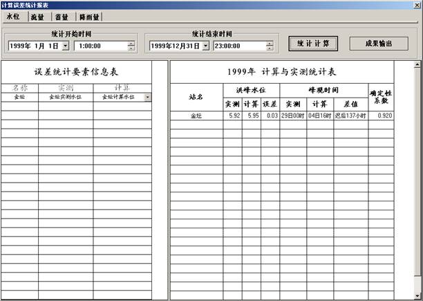 率定误差统计分析——对图形输出管理窗体中的所有子图形要素的数据类型的数据进行误差分析。
