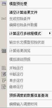 开始运行——起动调度模型计算,具体是调度计算还是生成初始条件计算,取决于前面的菜单生成初始条件的选择。