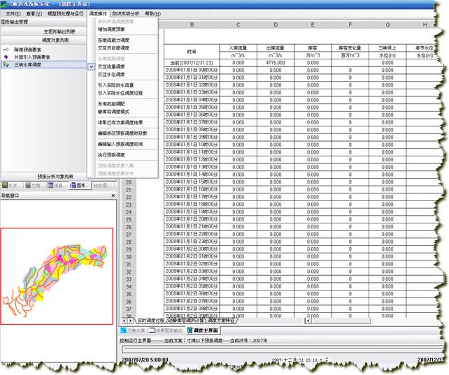 其中文件、查看和帮助菜单各项同GIS主界面菜单,参看2.1节,本节主要介绍模型预处理与运行菜单与2.1节菜单不同部分以及调度操作菜单和防洪形势分析菜单。