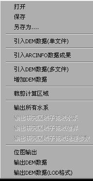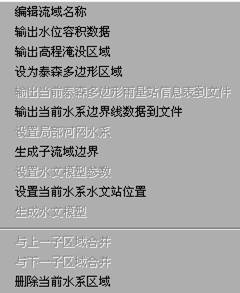 设为泰森多边形区域——选中干流或某支流,此菜单项即可用。选择此菜单项后,在执行“DEM高程生成”的“生成泰森多边形”,即可生成整个区域或某个子区域的泰森多边形。
