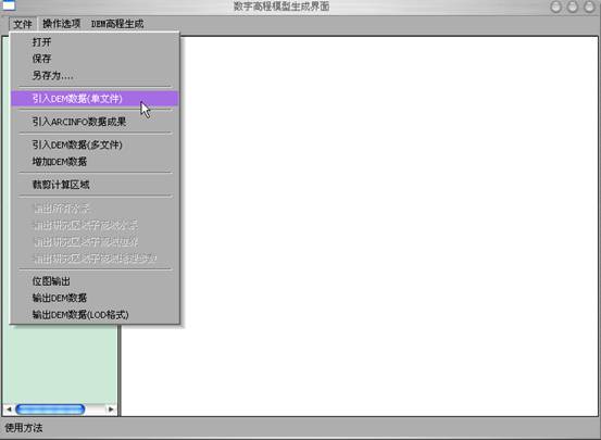 2)引入DEM数据:打开“文件”菜单中“引入DEM数据(单文件)”,选中沿渡河DEM数据.txt,得数据高程的网格,在跳出的“DEM经纬度坐标信息”中点确定按钮。