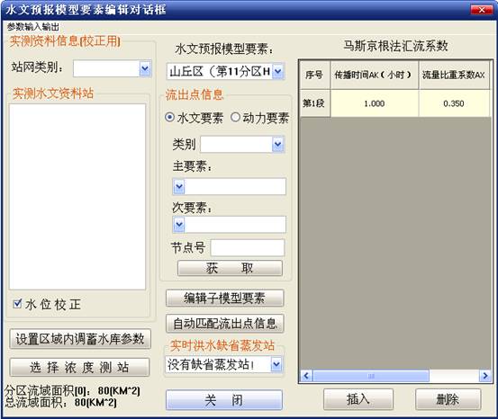 在编辑子模型要素的界面中的雨量站信息中,手动选择所用站点及其权重系数,保存。